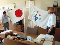 相模原市議会との違いの一つとして、石狩市議会の議長・副議長室には、国旗と市旗が置かれていました。