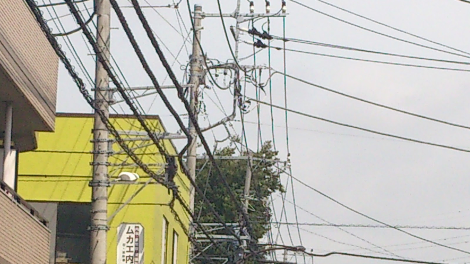 そこで、たまに“上を向いて歩こう”と思い、空を仰いだら電線の多さにビックリ!普段から目にしているのは確かであるが、改めて思う事は、大きな地震でも起き、電柱が倒れたらどうなるんだろう?