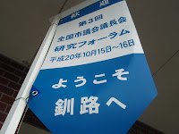 第3回 全国市議会議長会 研究フォーラムin釧路 2008年10月17日 最終更新日時 : 2008年10月17日 hiroshee 昨年の熊本市に続き、今年度も研究フォーラムに参加して参りました。地方議会における、様々な課題を大学教授や、新聞記者等々がパネルディスカッション。また、先進的な取り組みをおこなっている市からの報告や、政務調査費のあり方等々、貴重なるお話を伺い、大変勉強になった充実した視察となりました。 北海道ならではの直線が続く道路と、積雪対策の一つ、縦型信号潮の香りがする釧路川 自然観察で釧路湿原にも行きました。