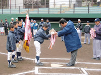 pm1:45 大野中地区少年野球協会主催「春季大会」を観戦に、「ひばり球場」へ!