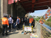 境川にて落書きを消しているボランティア団体に遭遇。