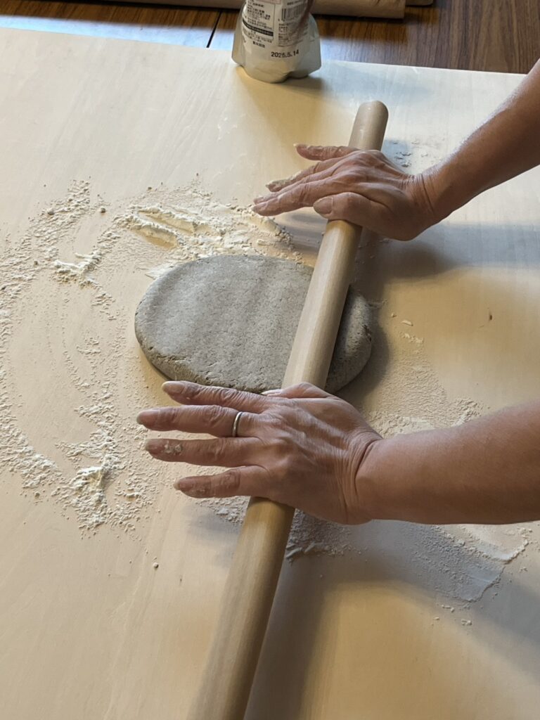 蕎麦打ち 2025年12月13日 最終更新日時 : 2025年12月15日 furuuchi 地元鵜野森で収穫したソバの実をそば粉にして食す会がおこなわれ参加!久しぶりに蕎麦打ちをおこなったが、なかなか楽しいものである。道具一式持っているので、今度は自分なりに挑戦してみようと思う!