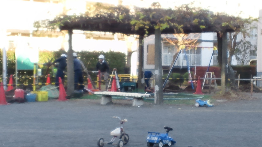 近所の公園にて 2010年12月11日 最終更新日時 : 2010年12月11日 hiroshee 公園遊具の点検および改修がおこなわれていた。 日頃公園で遊ぶ子どもたちの安全面を考えたら当然である。 だいぶ前であるが、他市において児童が公園遊具の不具合で大事故・・・市の管理責任はどうなっているのか!等の報道があった。 日頃のチェックの甘さが指摘されていたが、そのような大事故を起こさないよう努めるのは公園設置者・管理者の責務であると思う。 未来を担う子どもたちの「安全・安心」を考えたら、他から予算を回してもメンテナンスは最重要だと考える。