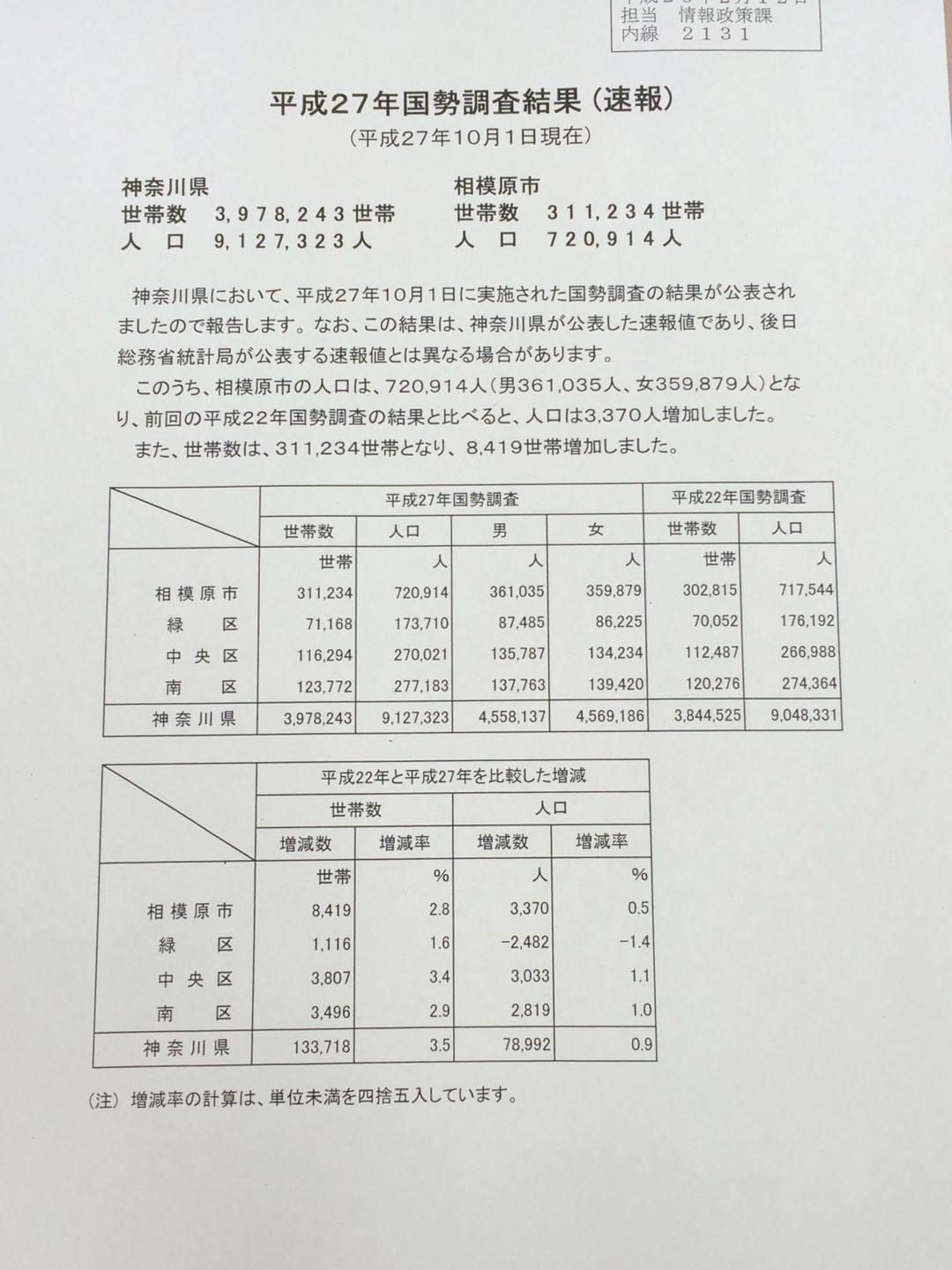 この結果については、県が公表した速報値であり、後日総務省統計局が公表する速報値とは異なる場合があるとの事である。