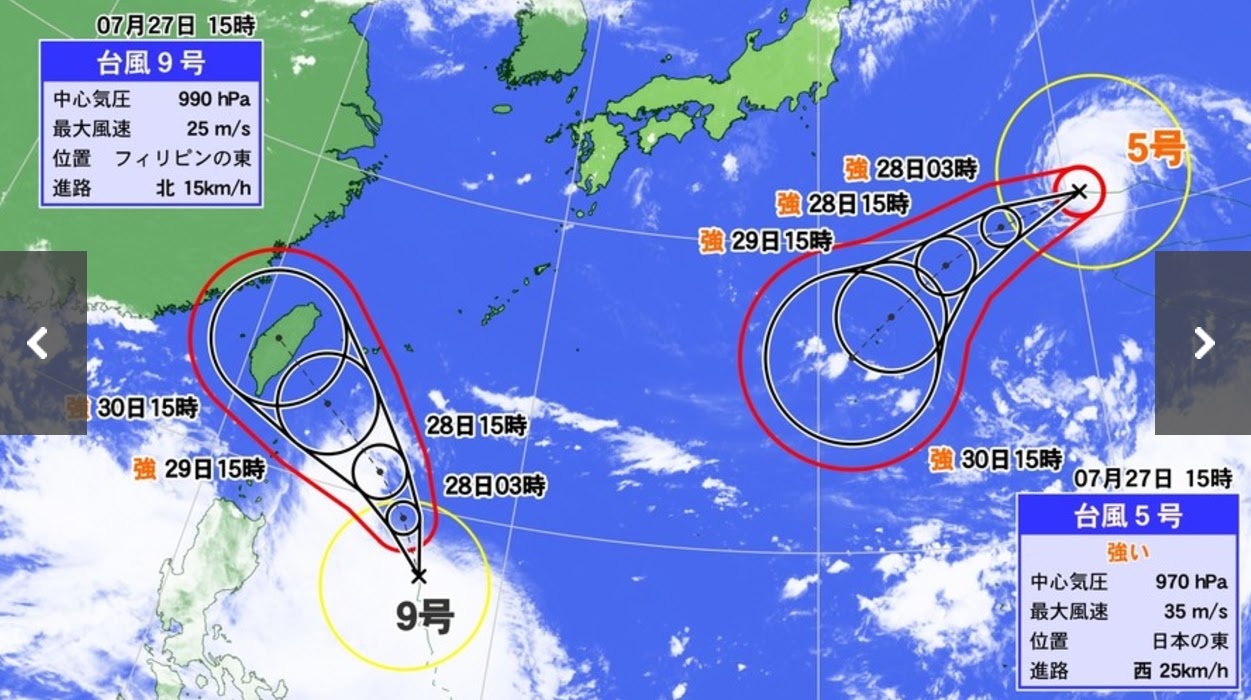 週末が心配 2017年7月27日 最終更新日時 : 2017年7月27日 hiroshee 日本に近づいている台風9号・・・強い勢力となって29日から30日にかけて沖縄の宮古・八重山地方に接近する見込みだとの事。29日は、各自治会主催の夏祭り・盆踊りが先週に引き続き多く開催されるので、週末の空模様が心配だ。