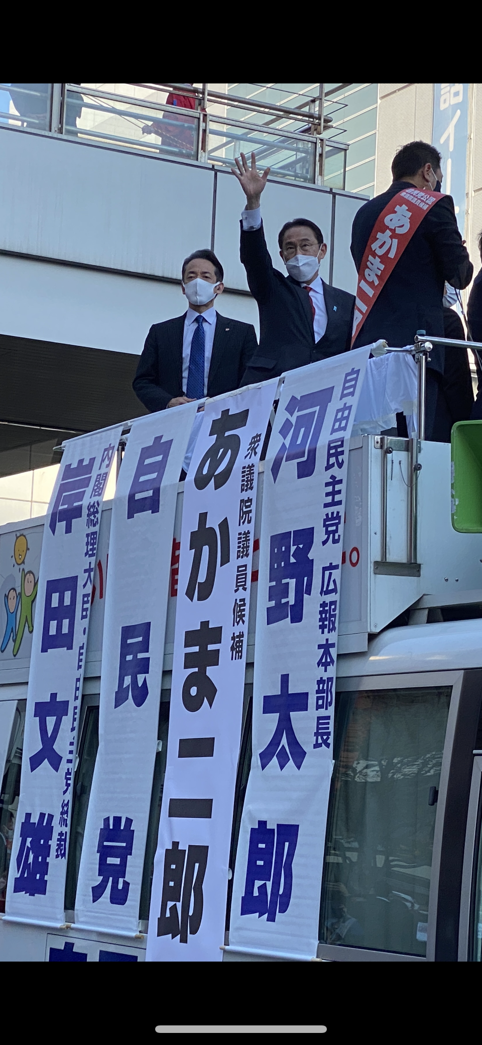 本日は、非常に厳しい戦いとなった神奈川14区に自由民主党の岸田文雄総裁と、同じく自由民主党の河野太郎広報本部長が、自分の選挙を投げうって応援に駆けつけてくれた!