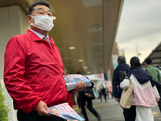 大手を振って手渡しできる自民党の政策パンフレットを持ち、自由民主党公認衆議院議員候補「あかま二郎」の更なる周知と支持のお願い活動をおこなった。