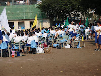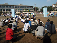 鵜光祭 体育の部 2008年10月4日 最終更新日時 : 2008年10月4日 hiroshee 本日、am9:00~鵜野森中学校において、第25回 鵜光祭体育の部が快晴の下、開催されました。 今年度も、例年通り5チームに分かれ、熱戦を繰り広げる戦いを応援してまいりました。今年度も、保護者により玉入れ合戦にも参加し、息子の黄ブロックの優勝にも貢献?したつもりです。本日は、大変な暑さだったので、日焼けした保護者の皆様も多かったかな、と思います。お日様にあたると、それだけで疲れてしまうので、今晩はゆっくり休みましよう。