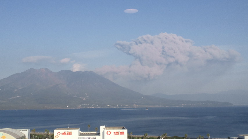 南岳あたりから噴煙が立ち上る!噴火である。