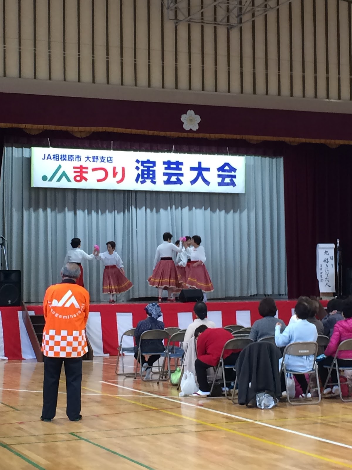 天候不順のため、お隣の小学校体育館を借りての演芸大会開催となった。