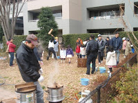 am10:00 古淵地区のウイルズ・スクエアくじらの会主催「もちつき大会」に参加。